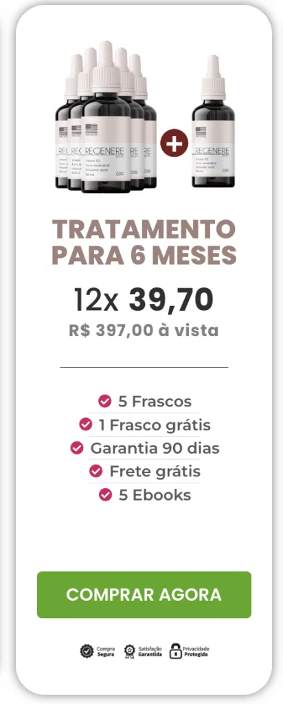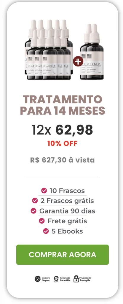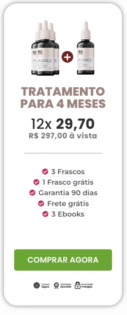 Confiamos tanto na eficácia do Regenere que caso você utilize ele durante 90 dias e não tenha resultados, devolvemos o seu dinheiro. Isso mesmo! Resultados em 90 Dias ou seu dinheiro de volta.